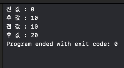 print("후 값 : \(num)")
